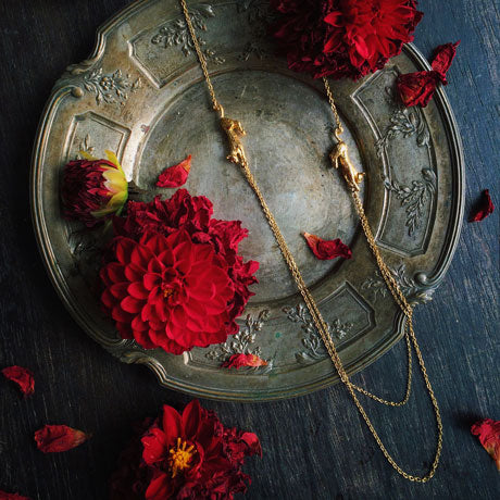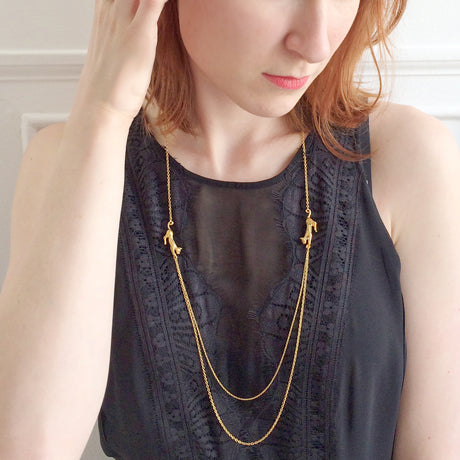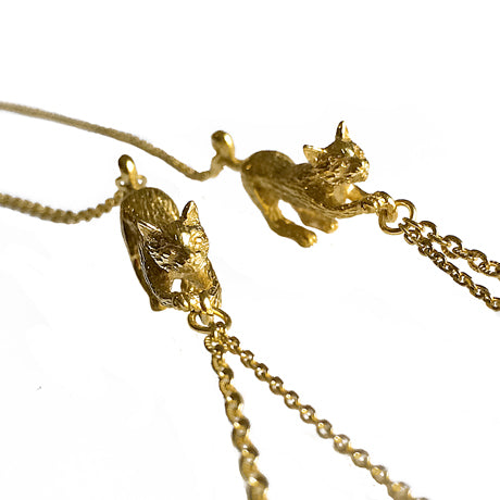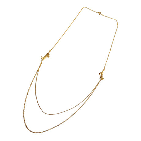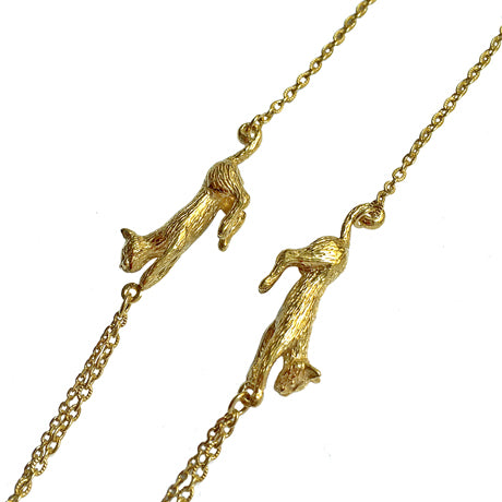 Collier long chaîne de 2 chats en argent 925 18KGP.