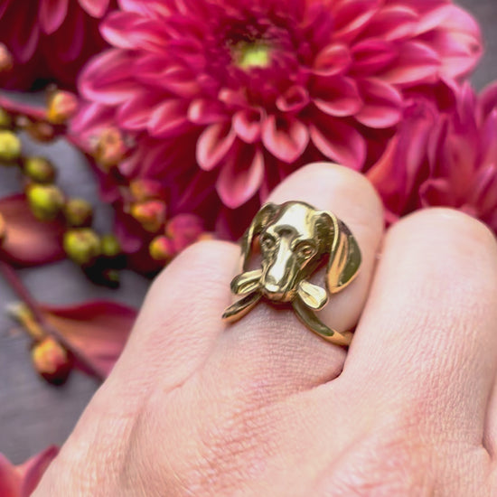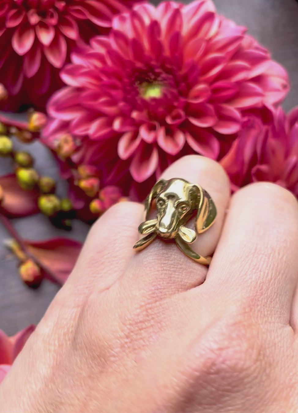 A ring that embodies the essence of companionship: dogs and humans as gifts to one another.