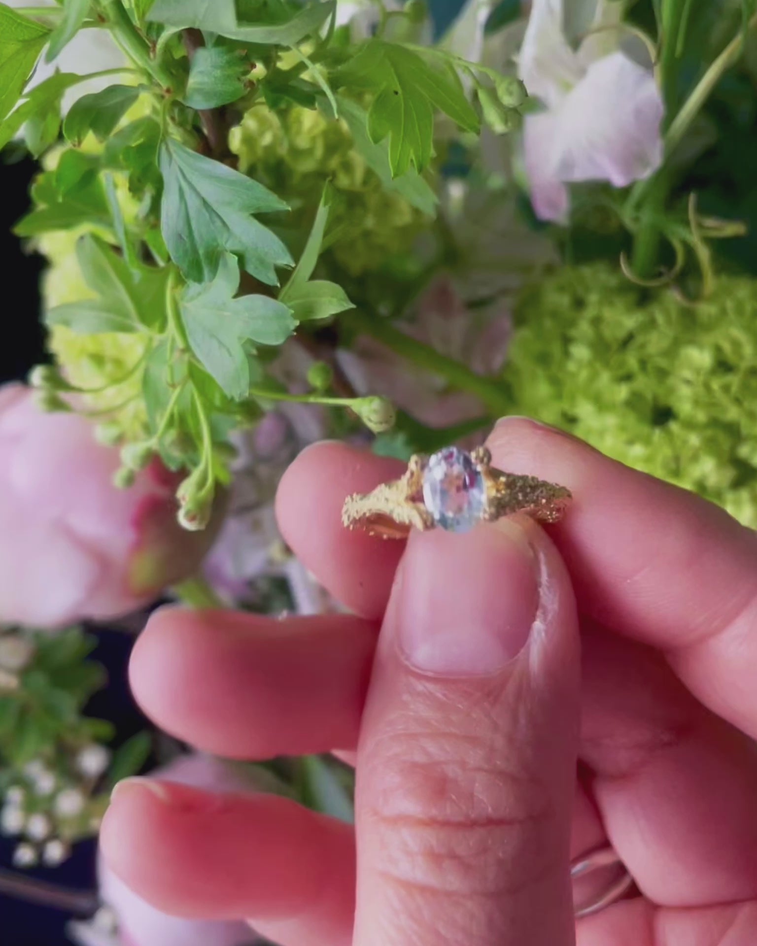 "lichen" ring in silver925 18KGP with a oval cut topaz